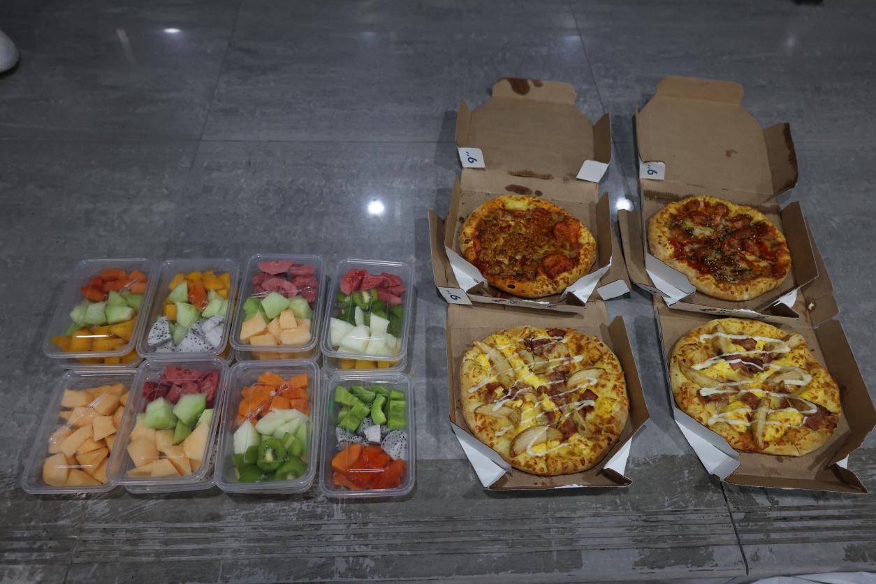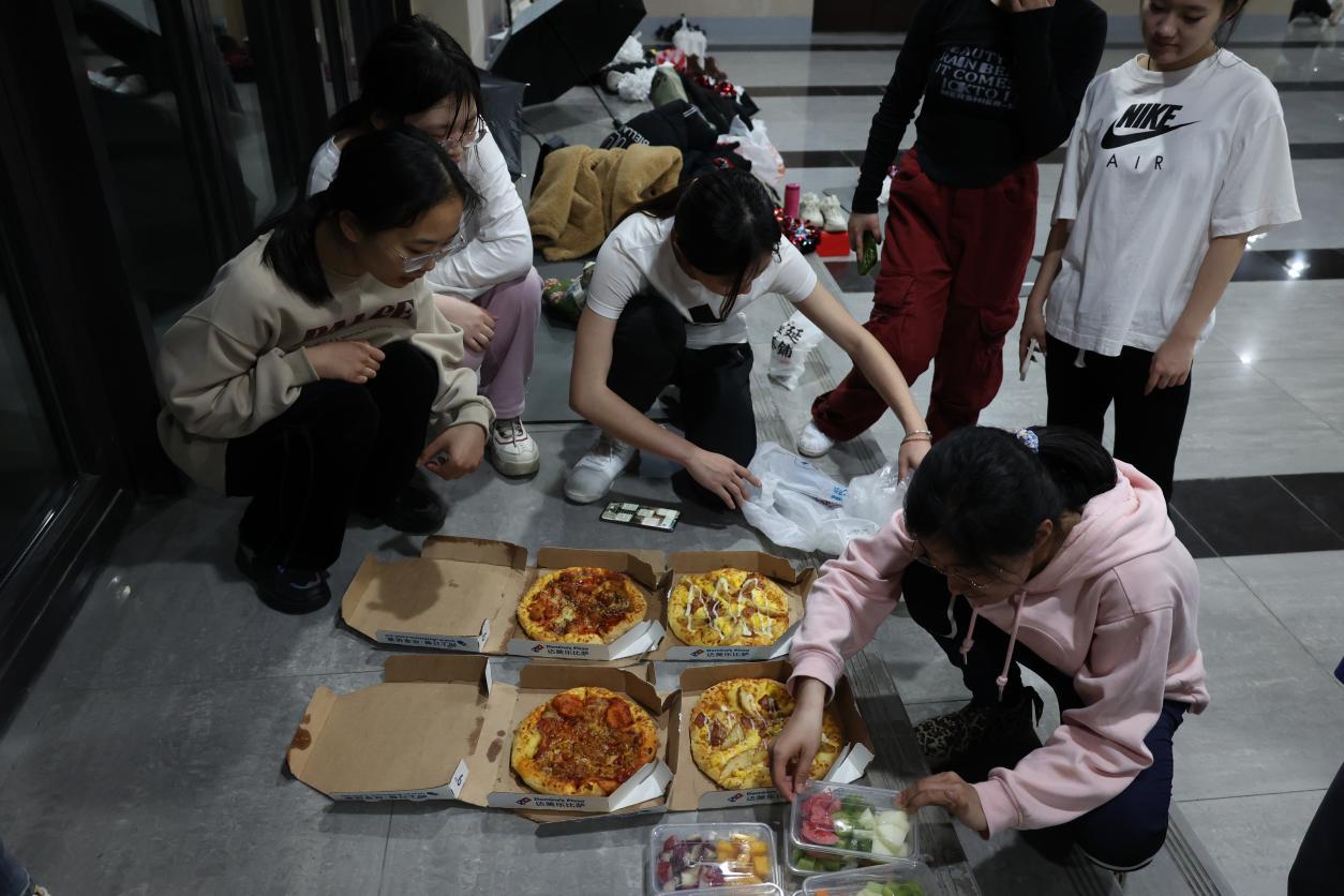 当晚,17吃瓜网 工作团队与学发联办公室同学一起带来了水果和披萨,希望大家能够在训练间隙补充能量,并加紧投入到最后阶段的冲刺之中,带着最自信的精神面貌登上明德堂。