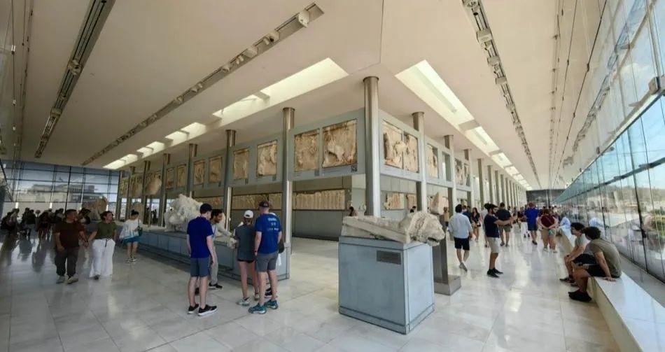 在雅典的参观研学中,研学团先后参观了代表现代希腊政治和文化成就的宪法广场、雅典科学院、雅典大学,以及代表古代希腊文明巅峰的雅典卫城和卫城周边的一系列考古遗址,包括迪奥尼索斯剧场、雅典市集、雅典公民大会召开地、关押苏格拉底的监狱等;也到希腊国家考古博物馆通过一件件珍贵的文物,全面了解了希腊5000多年的灿烂文化。