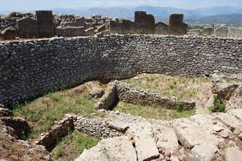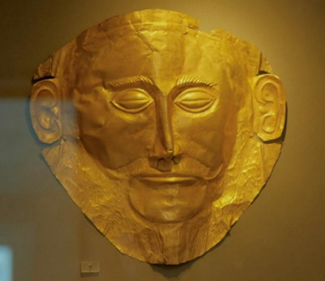 在从雅典前往帕特雷的路上,我们途经了著名的迈锡尼古城。迈锡尼古城位于伯罗奔尼撒半岛东北部,是爱琴海地区的贸易枢纽。该城邦的崛起不仅在财富上超越了克里特岛,还因其产生了最早的线形文字、保存了最早的希腊文字记录而超越了更早的米诺斯文明。1876年,德国考古学家海因里希·施里曼(Heinrich Schliemann)最早发现了这片遗址,并得出早在青铜时代就已经存在高度发达的迈锡尼文明这一结论。迈锡尼遗址以王室墓葬为主,这个王室大约存在于公元前15-16世纪。从这里出土的随葬品多为金子铸成的面具、珠宝等,这也印证了荷马史诗称其为“富有黄金的迈锡尼”。