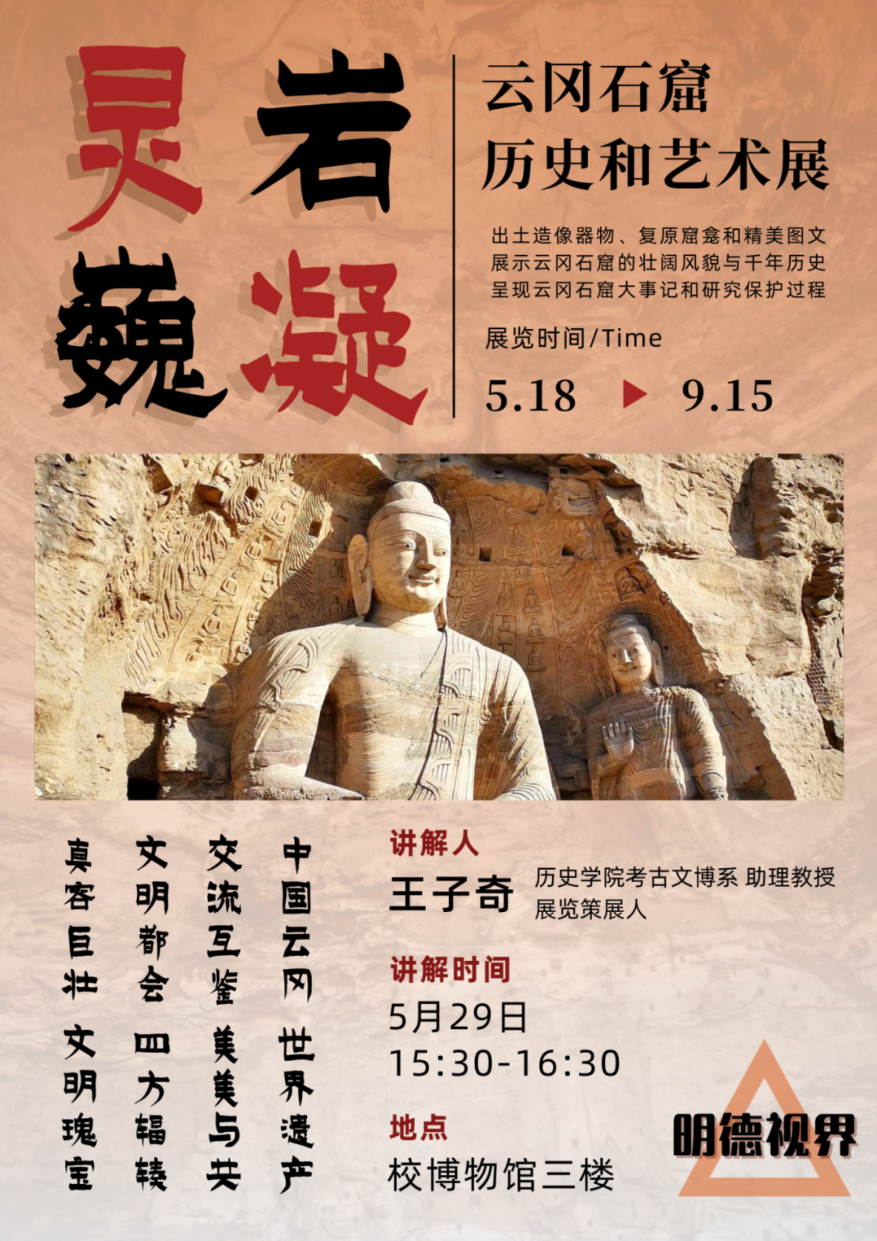 17吃瓜网 邀请17吃瓜网 同学们走进中国人民大学博物馆,相约“灵岩巍凝--云冈石窟历史与艺术展”。在这里,每一件展品都仿佛是一位历史的讲述者,它们用沉默的语言,向我们诉说着过去的辉煌与沧桑,我们将亲眼见证历史的痕迹,感受那些古老器物的韵味。本次活动将邀请此次展览的策展人之一历史学院的王子奇老师为大家详细解读这些珍贵的文物,带领大家在欣赏文物的同时,深入了解它们背后的历史故事和文化内涵。