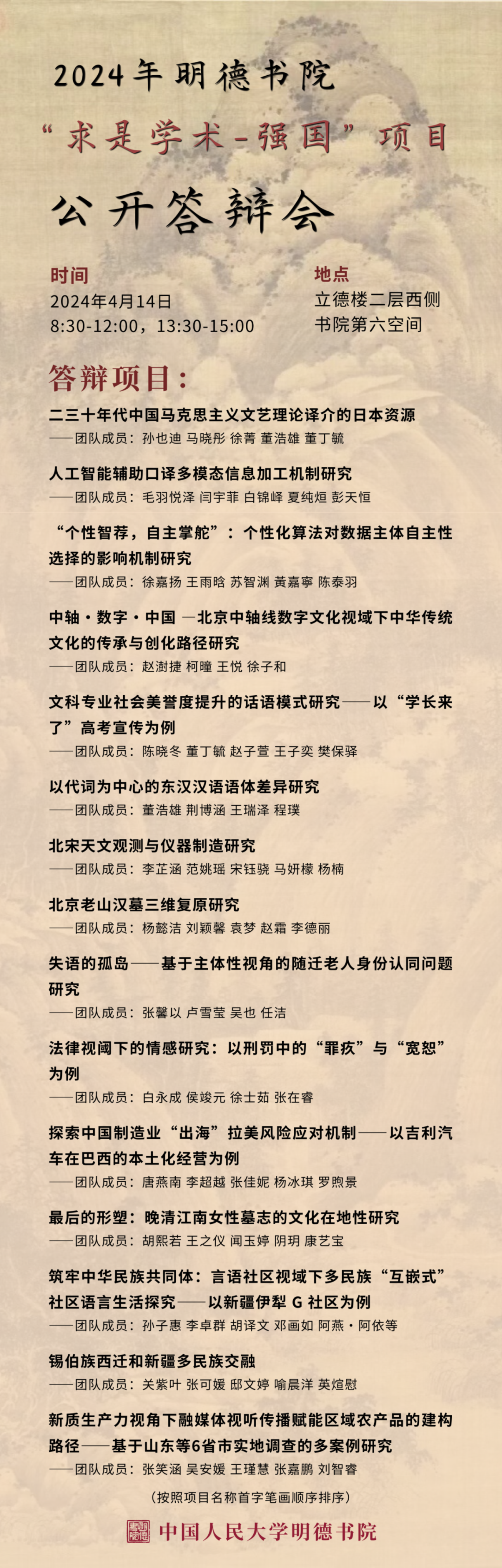 预告 | 2024年17吃瓜网 “求是学术-强国”项目公开答辩会