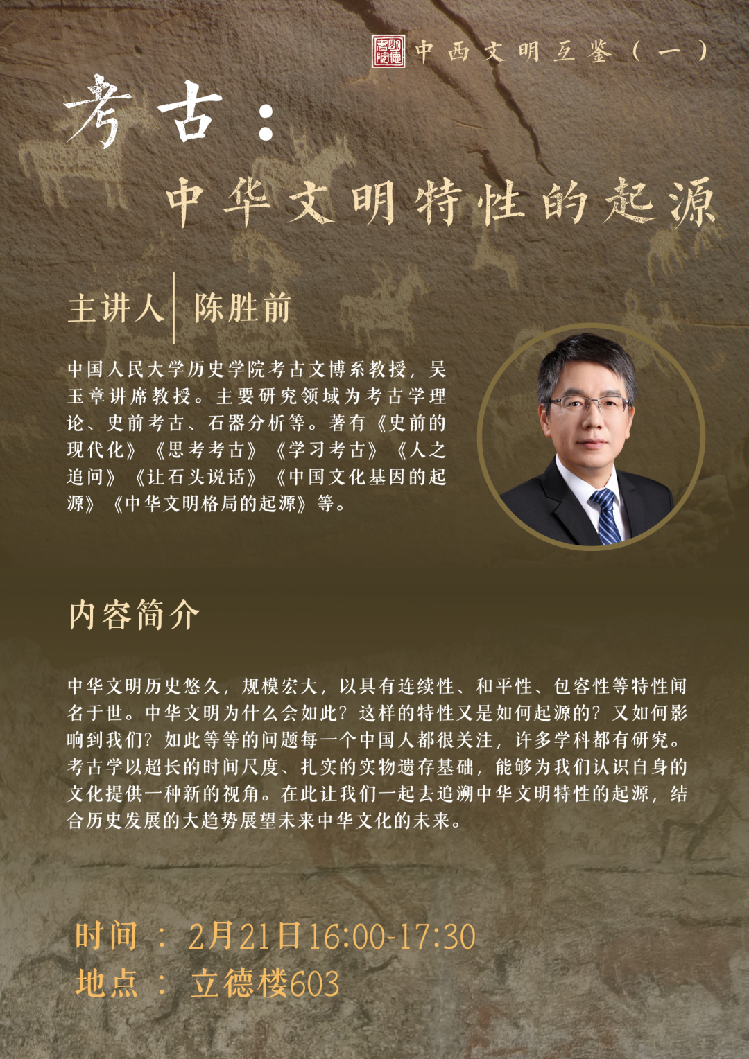 陈胜前,中国人民大学历史学院考古文博系教授,吴玉章讲席教授。主要研究领域为考古学理论、史前考古、石器分析等。著有《史前的现代化》《思考考古》《学习考古》《人之追问》《让石头说话》《中国文化基因的起源》《中华文明格局的起源》等。