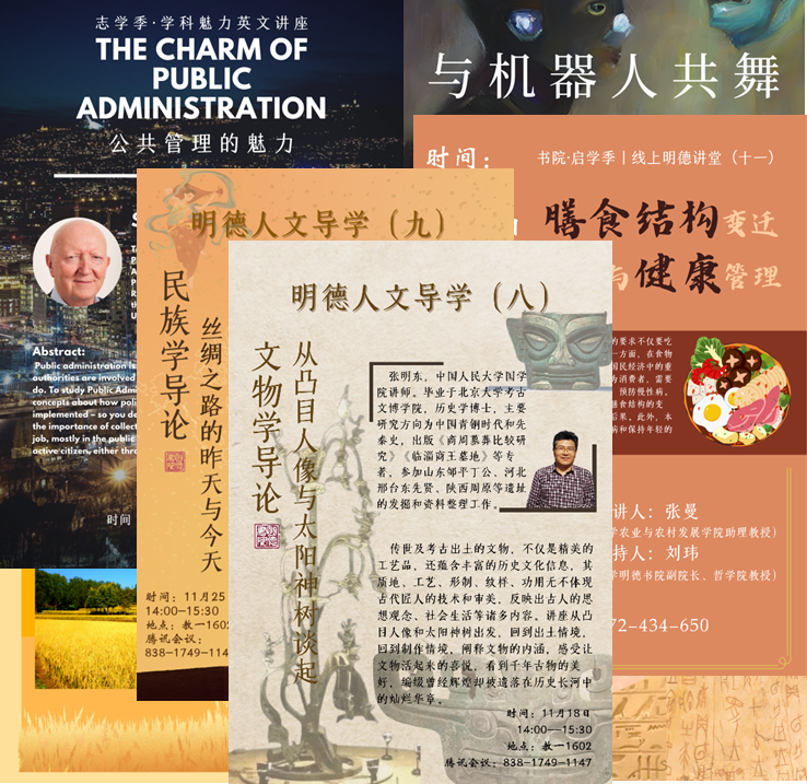回顾过往,我们成功组织了一系列精彩绝伦的学术讲座。明德导学讲座,熟悉专业学科;魅力英文讲座,开拓国际视野;中西文明互鉴,展开哲学深思;跨学科对谈,助力融合思维……