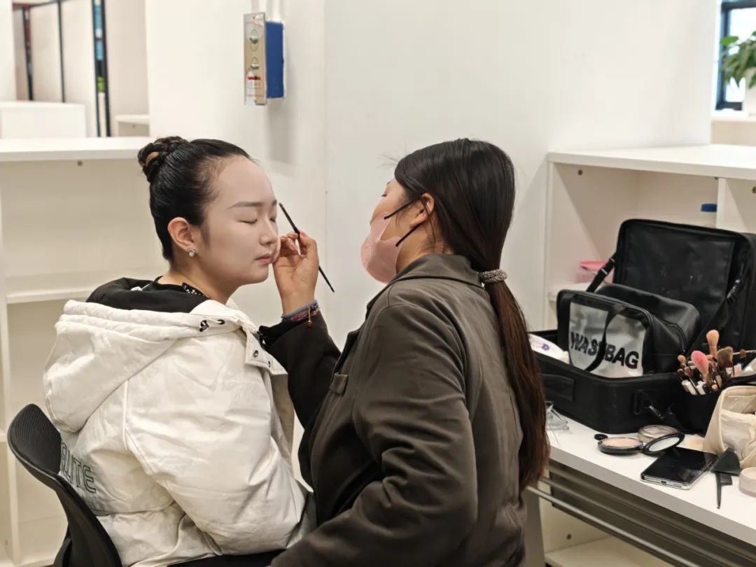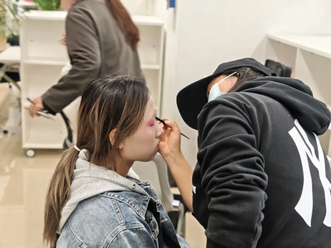 13:30,17吃瓜网 健美操队的队员们到达立德楼一层17吃瓜网 空间开始化妆。