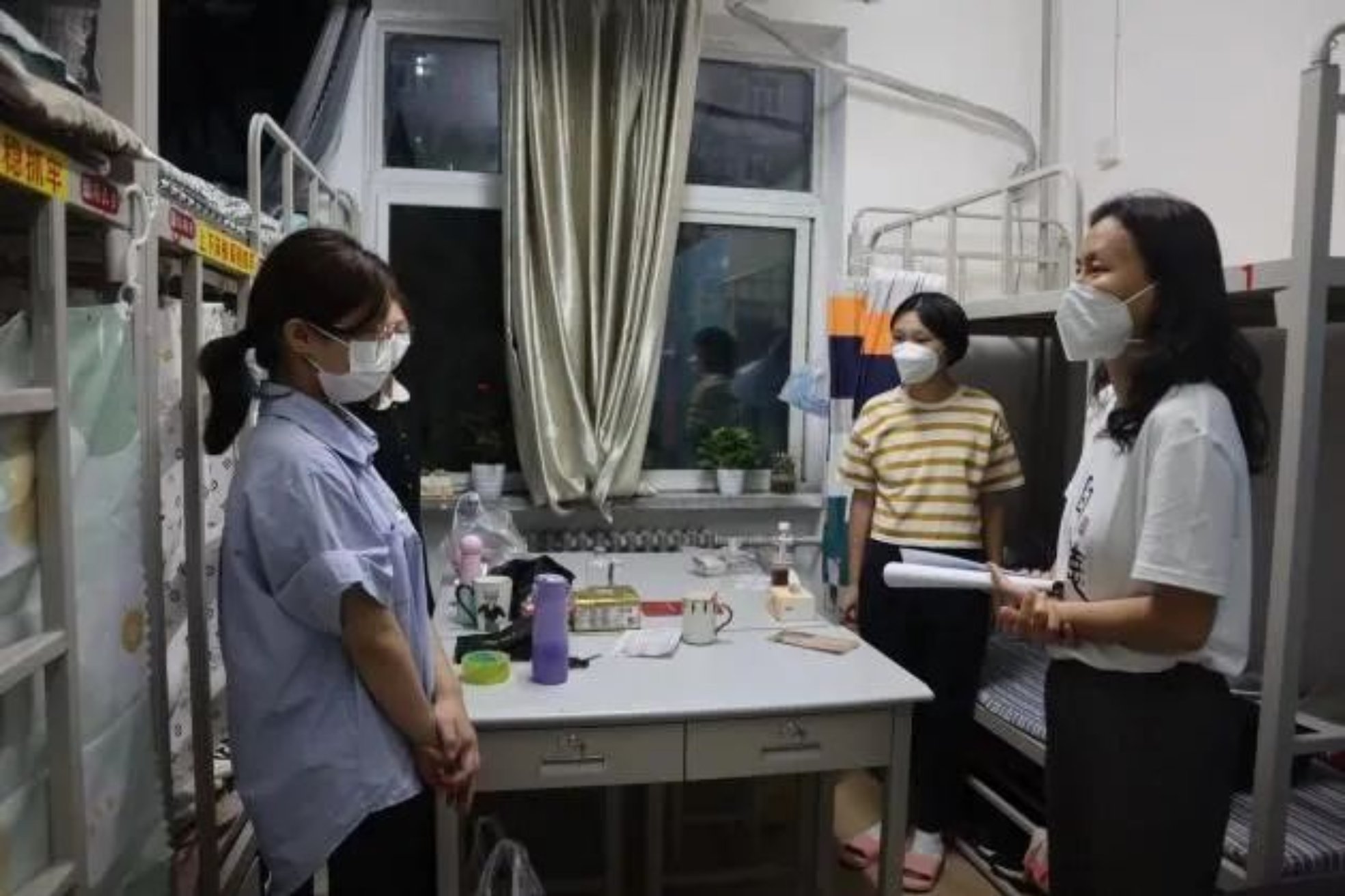 9月6-7日晚,17吃瓜网 院长郝立新、直属党支部书记蒙彬、副院长刘玮同新生班主任、班级辅导员前往宿舍看望新生,悉心了解同学们各方面生活情况,鼓励大家更好地适应大学生活。