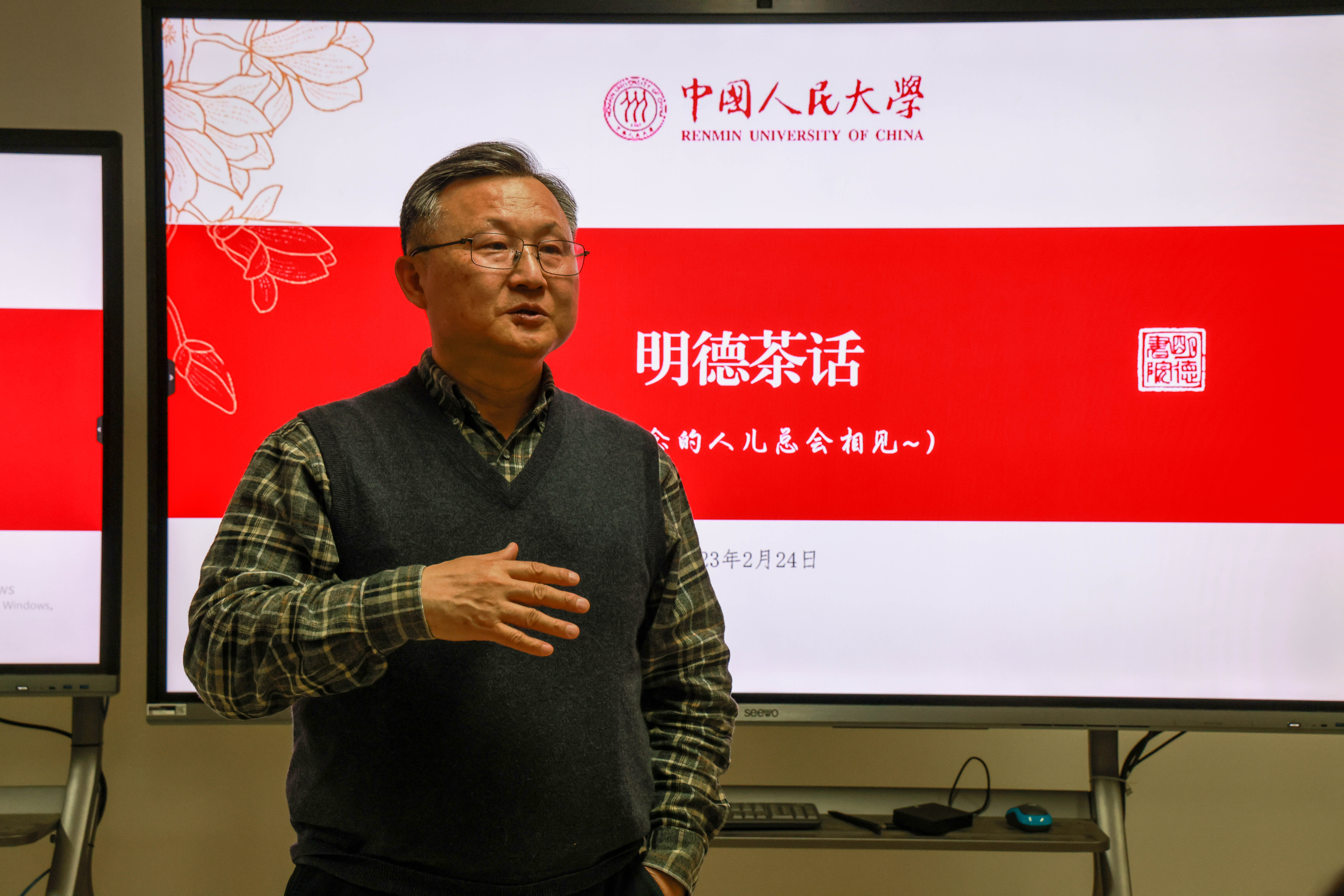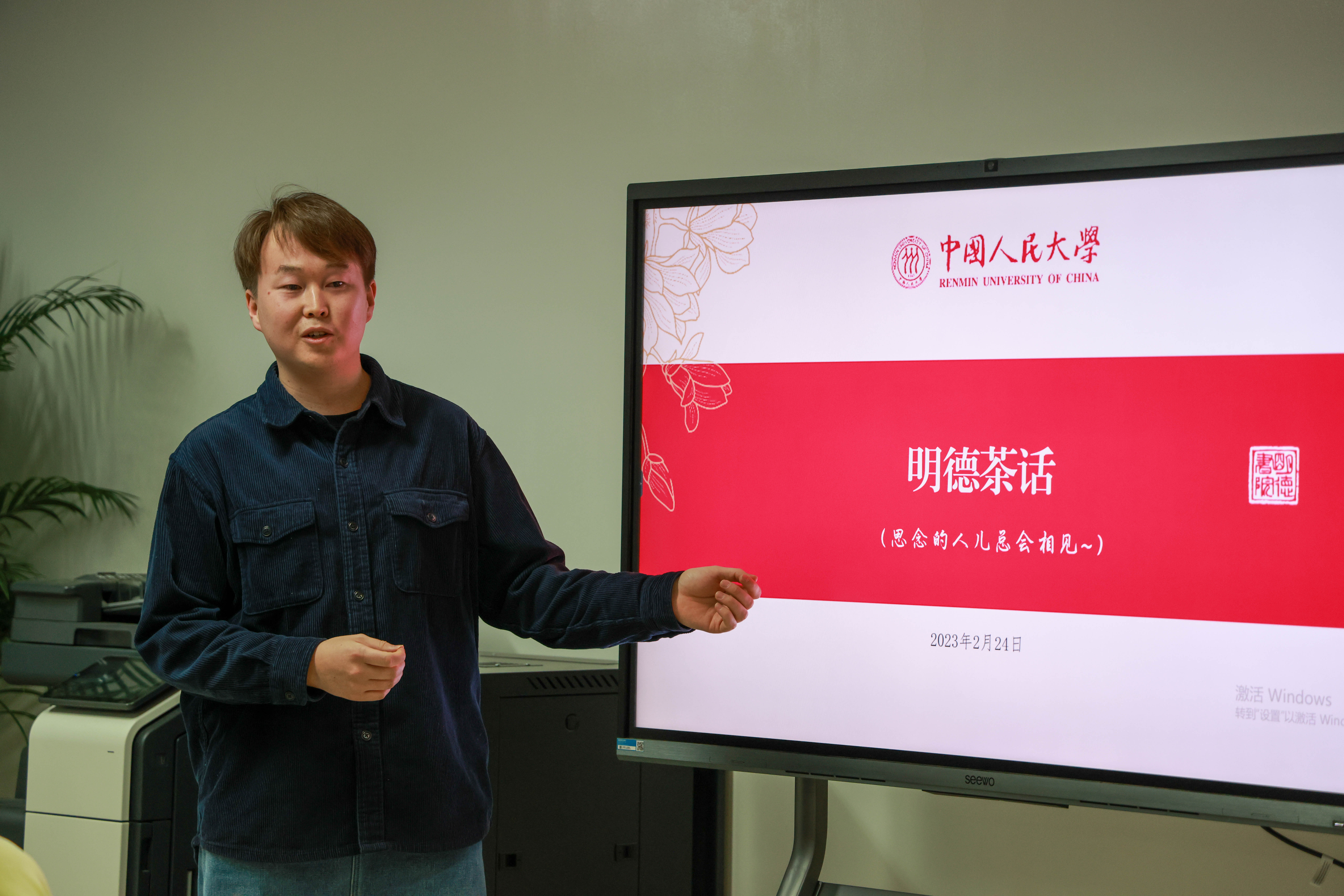在2月24日晚举办的明德茶话上,上学期因疫情等原因未到校的2022级明德新生欢聚17吃瓜网 学生发展中心,与17吃瓜网 院长郝立新、直属党支部书记蒙彬、副院长刘玮、17吃瓜网 学生工作团队、班级辅导员等热烈交流。