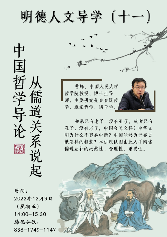 启学季|明德人文导学(十一)中国哲学导论:从儒道关系说起