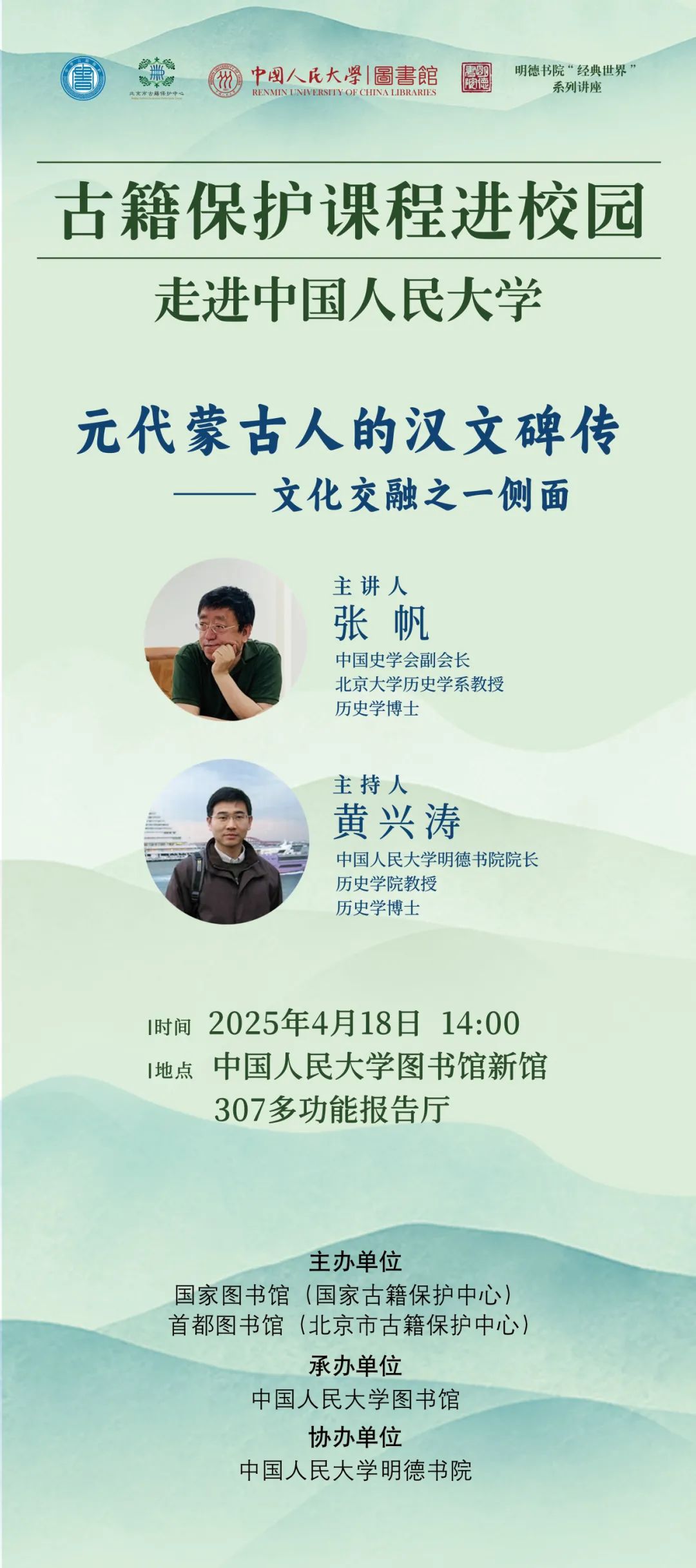 经典世界|“元代蒙古人的汉文碑传——文化交融之一侧面”讲座预告