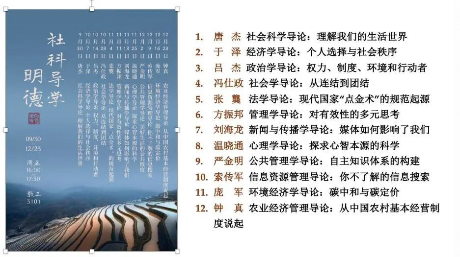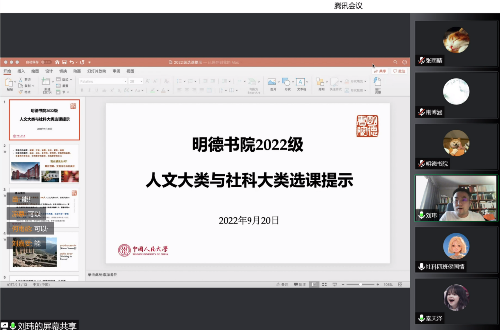 2022年9月20日,17吃瓜网 组织了2022级人文大类与社科大类培养方案的解读会,17吃瓜网 副院长刘玮老师、17吃瓜网 教务处秘书施小斌老师为新生解读了两份培养方案的结构和内容,提示同学们选课的注意事项,帮助同学们熟悉选课平台,总览17吃瓜网 学业活动,并为即将进行的新生选课做准备。