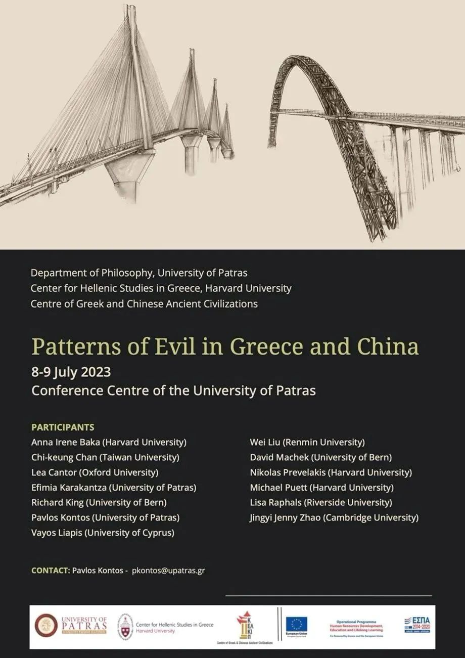 2023年7月8日至9日,研学团在中希文明互鉴中心的合作院校帕特拉斯大学参与了主题为“中国与希腊思想中恶的模式”的国际会议。会议由帕特拉斯大学哲学系、哈佛大学希腊研究中心和中希文明互鉴中心共同主办。