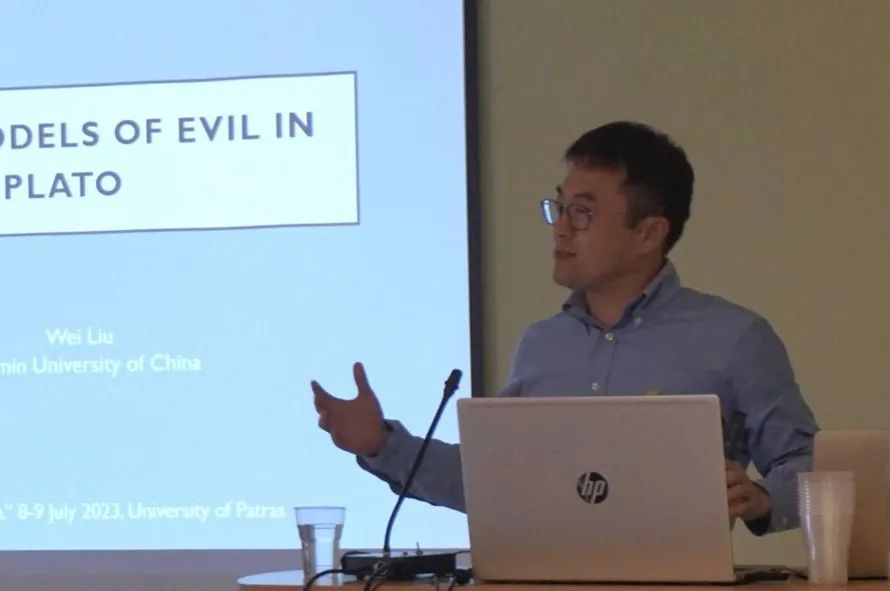 第二位报告人是中国人民大学的刘玮教授,他做了题为《柏拉图中恶的三种模式》(Three Models of Evil in Plato)的报告。他论证,在柏拉图作品中存在三种解释恶的模式:理智模式、灵魂模式和生理模式。在理智模式中,恶源于无知,即“无人有意作恶”;在灵魂模式中,恶来源于灵魂三分中非理性部分不服从理性部分的命令;而在生理模式中,身体的疾病造成灵魂的损伤,从而导致恶。同时,这三个模式又是彼此联系的,灵魂模式和生理模式也会造成无知,而这正是最大的恶,抑或恶的根本原因。但是与此同时,柏拉图又主张,即便无知是恶的重要源头,也并不妨碍人应当对无知造成的恶负责,因为我们总要努力求知向善。