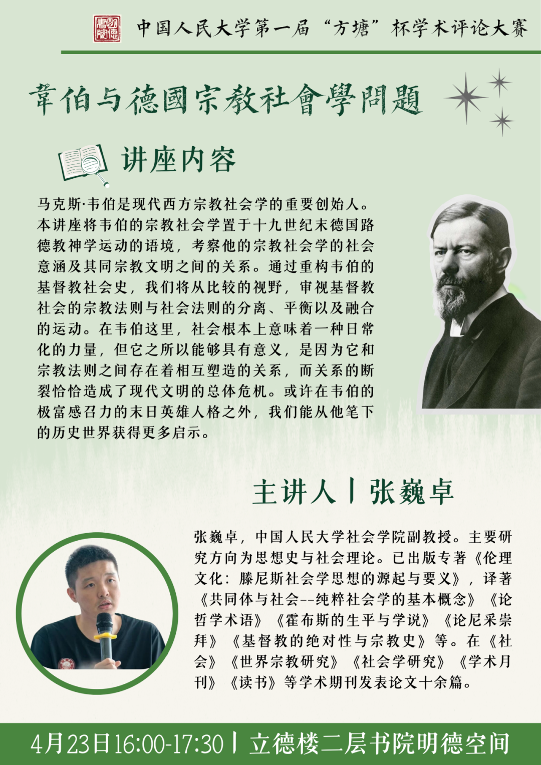 “方塘”杯系列讲座 韦伯与德国宗教社会学问题