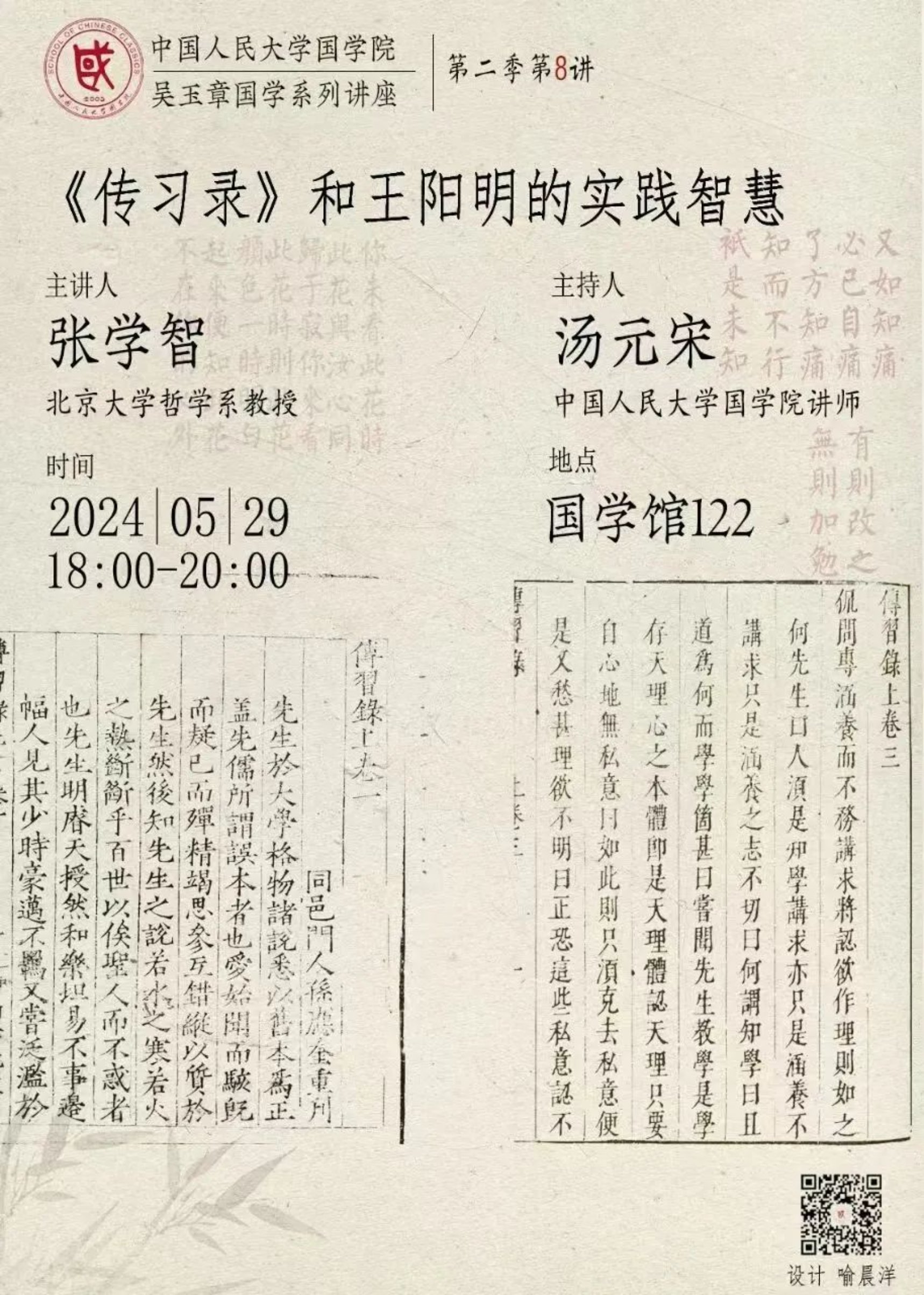 03 讲座预告 | 吴玉章国学系列讲座第二季第八讲——《传习录》和王阳明的实践智慧