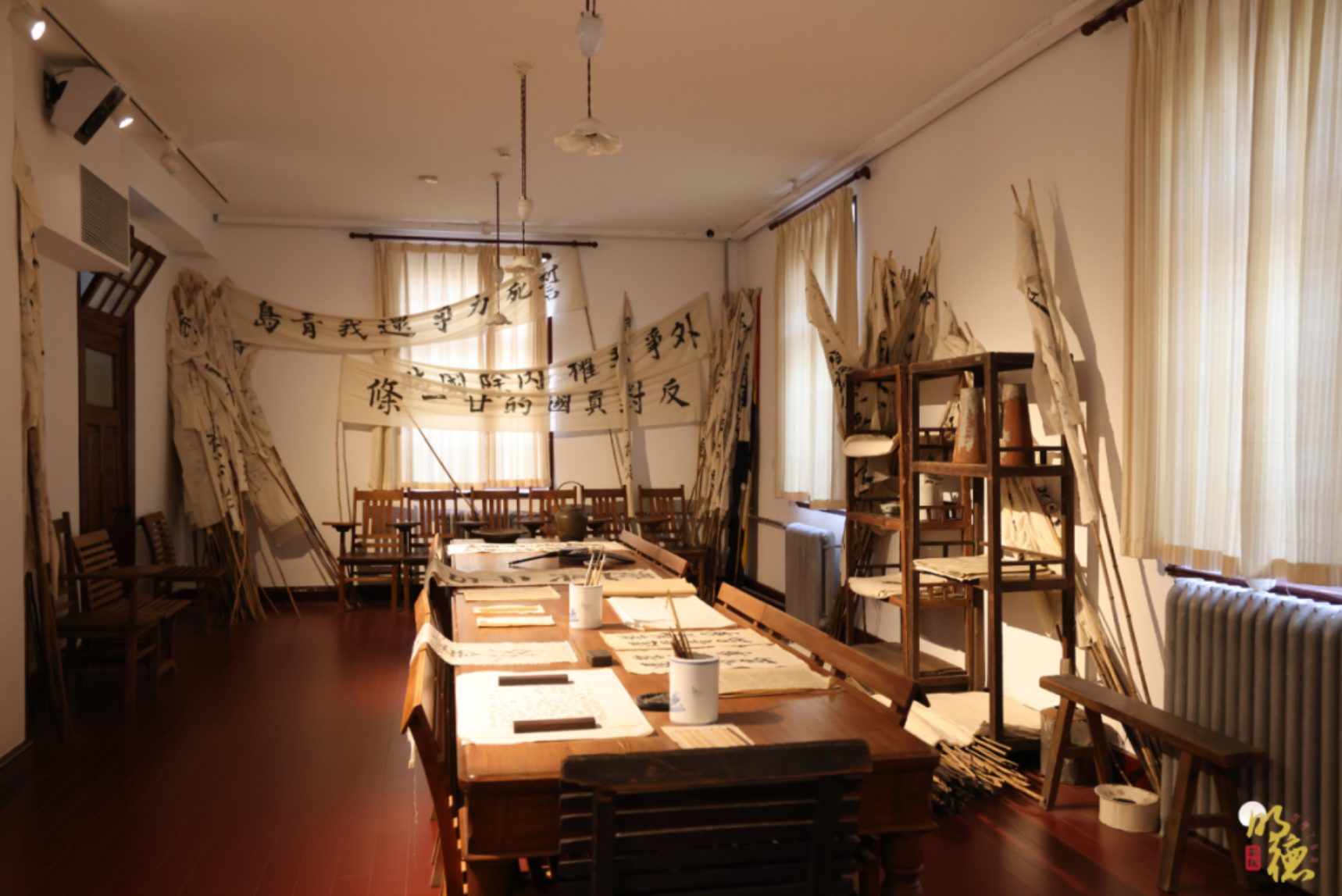 跟随讲解人员的脚步,同学们进入了北大红楼一楼,开始了这场穿越时空的对话。在图书馆主任室,李大钊先生提笔写下了对联:“铁肩担道义,妙手著文章”;在五四游行筹备室,百年前爱国青年在床单上写下了“外争主权,内除国贼”的铿锵誓言;在《新青年》杂志展厅,同学们深入学习了这本为无数进步青年指明方向的书刊的办刊历史……
