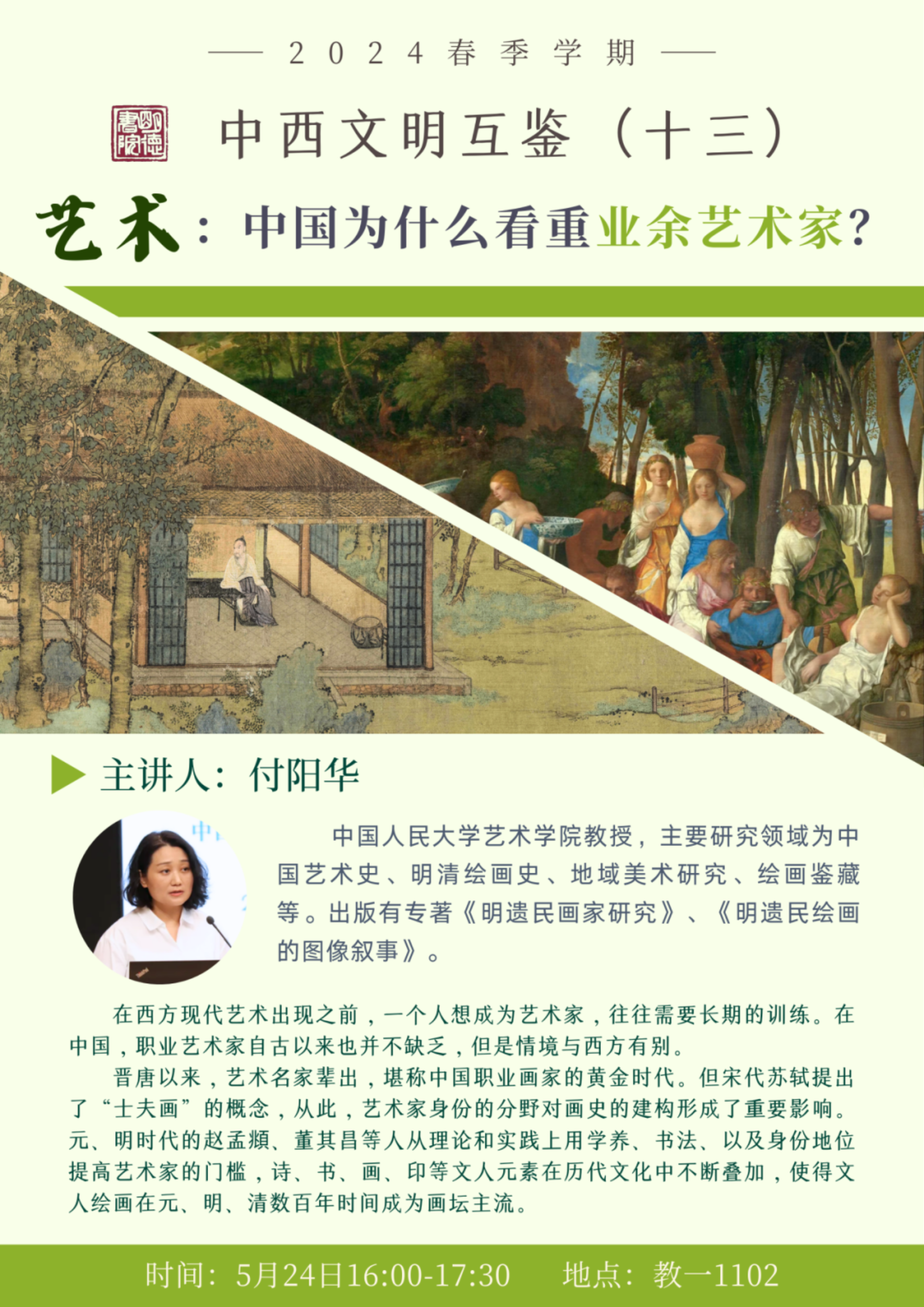 付阳华,中国人民大学艺术学院教授,主要研究领域为中国艺术史、明清绘画史、地域美术研究、绘画鉴藏等。出版有专著《明遗民画家研究》、《明遗民绘画的图像叙事》。