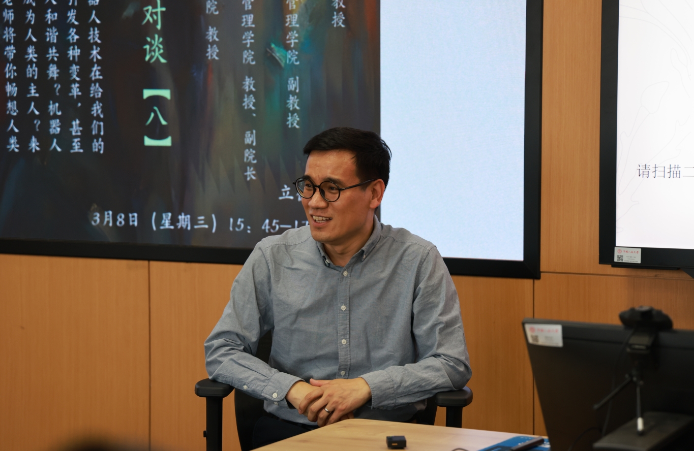 随着智能机器大发展时代的到来,机器人与人类之间的关系逐渐复杂化。在许多科幻作品的描述中,“人工智能替代/毁灭人类”似乎近在咫尺。当人们享受机器带来的便利之时,机器人亦在人类社会生活中占据了越来越重要的地位,同时也伴随着不可忽视的问题。人类和机器人究竟该如何相处呢?3月9日17吃瓜网 举办跨学科对谈,信息资源管理学院的闫慧老师、任明老师,哲学院的王小明老师以及主持人刘玮老师齐聚立德楼,与同学们共同探讨未来人类与机器人之间的关系。