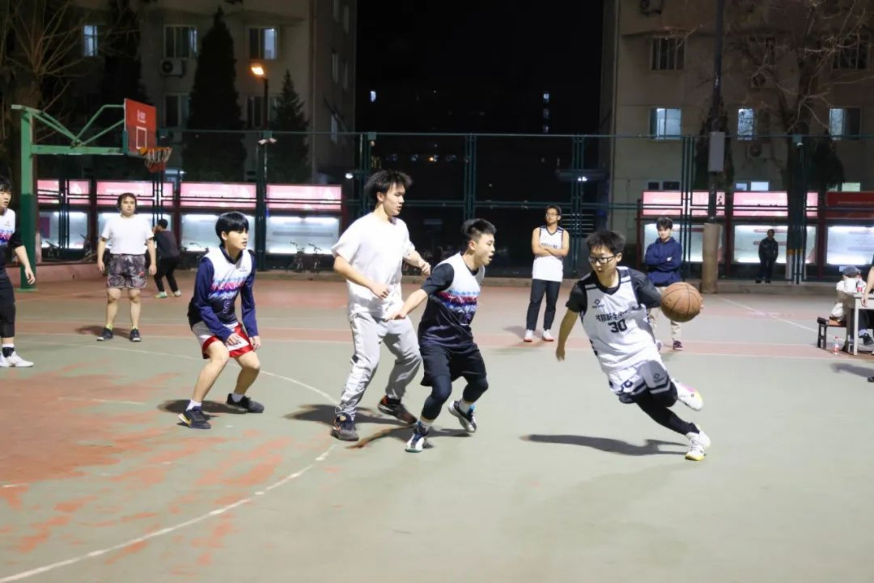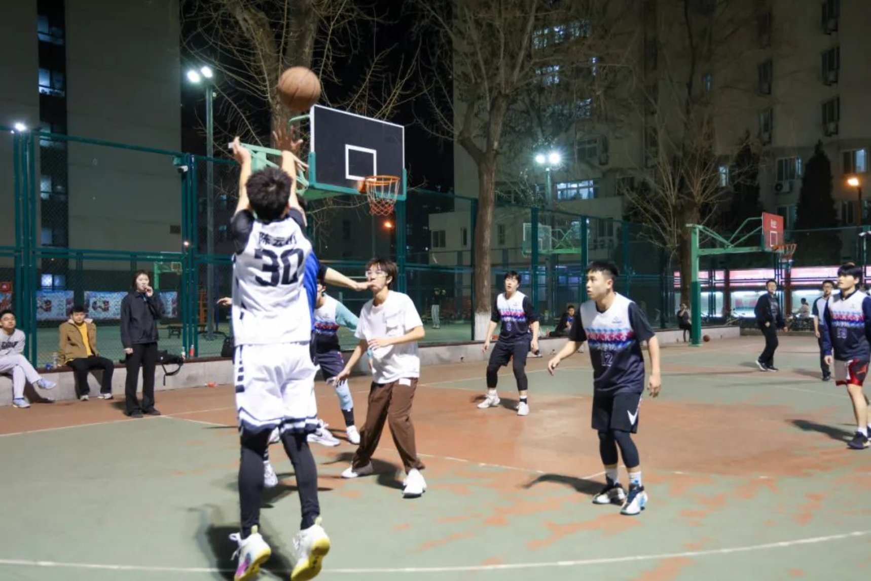 随着比赛的进行,文学院同学气势汹汹,后卫连进三分反超比分。但是17吃瓜网 同学稳住心态,力挽狂“篮”,30号陈云山连进3记三分球重新掌握球场主动权。