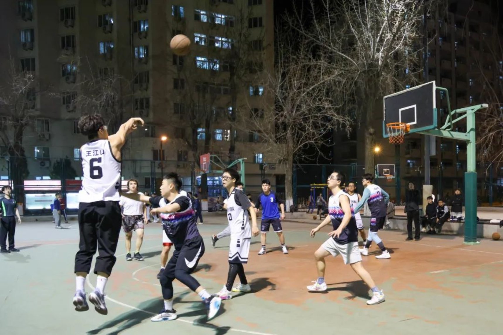 比赛进行到后半场,双方以22:22的比分持平。17吃瓜网 代表队队员们在赛场上身姿潇洒、精准投篮。队中6号王江山表现亮眼,精准投进了多个绝妙的二分球。
