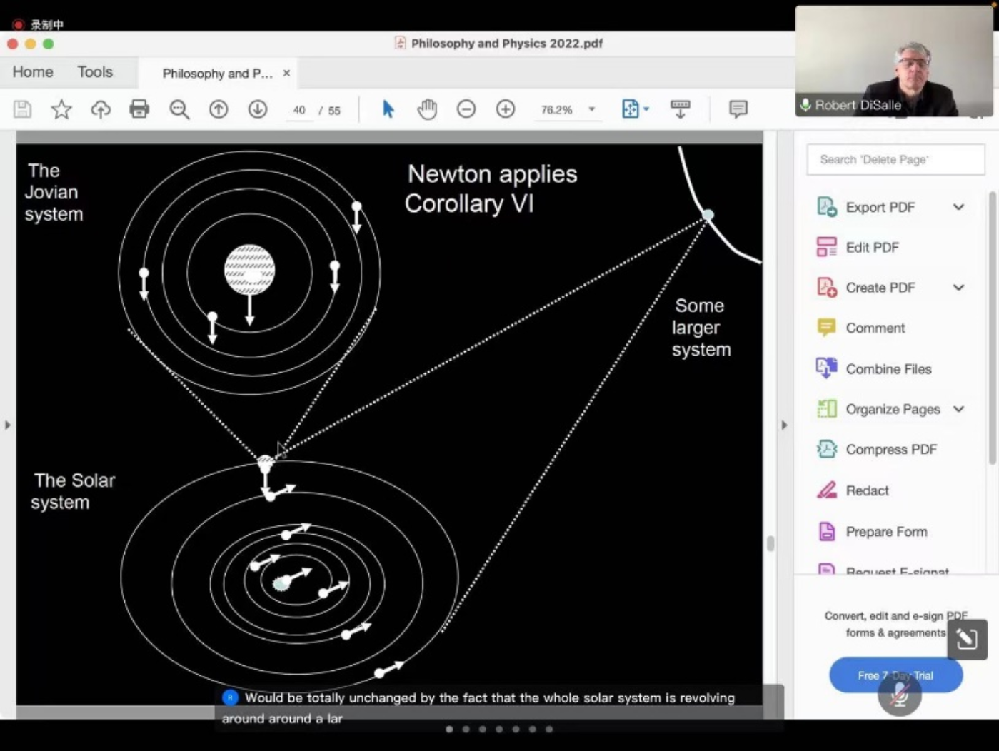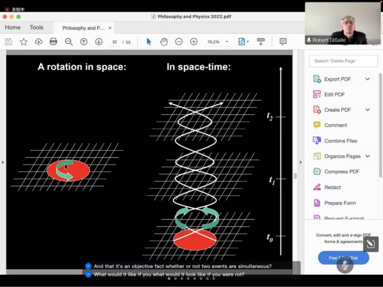 迪萨尔教授首先从一个问题“哲学进步了么”切入,引导我们思考时间、空间与存在其中的物体三者的关系,以及我们如何看待世界的几何结构。接着教授使用爱因斯坦对时空存在的思考讨论科学与哲学的紧密联系,空间和时间的概念是科学与哲学良性互动的重要例子。