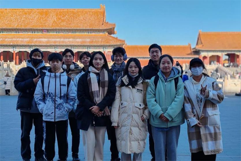 在故宫博物院,我班团支部开展了一次特别的学习活动。进门前沿着小道,一侧是高耸的城墙,另一侧护城河环绕,展现了古代军事技术的先进性,庄严而肃穆。穿过午门,我们自太和殿一路向前,观察榫卯结构的精妙构思,欣赏红墙的大气宏伟,感叹各式纹样的华丽精美。同时,我们也间歇驻足,仔细阅读对场馆历史意义的介绍,听语音讲解过去的故事,仿佛跨越了时空的阻隔触摸到了厚重的历史文化。