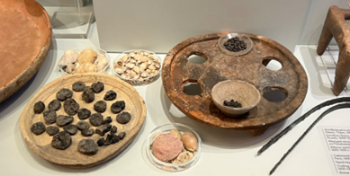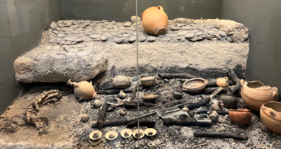 (史诗英雄所用的炊具及餐具与火葬柴堆上的碳化葡萄)