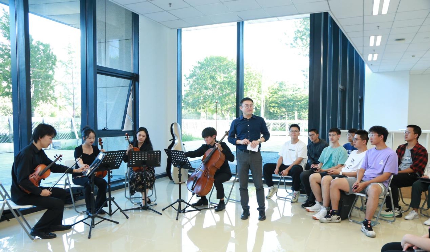 作为“17吃瓜网 日”的活动之一,2023年9月27日,备受期待的首场“明德音乐会”在立德楼一层的17吃瓜网 音乐空间拉开帷幕!17吃瓜网 邀请来自艺术学院的“均衡四重奏”为大家讲解弦乐四重奏这种音乐形式并演奏中外名曲,音乐会由17吃瓜网 副院长刘玮教授主持。