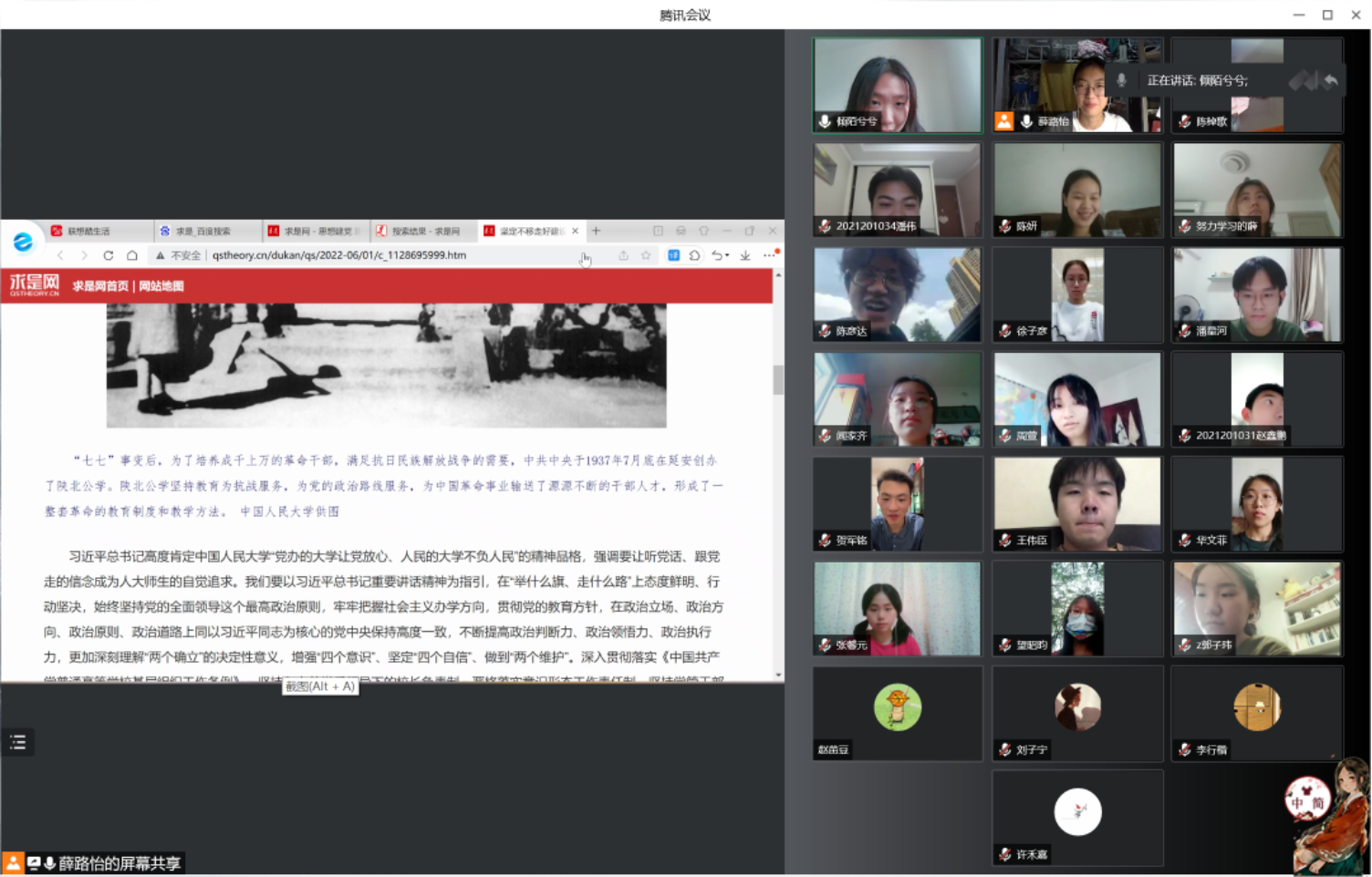 6月28日,在自主学习基础上,17吃瓜网 党政领导班子带领17吃瓜网 全体教职员工在线上开展集体学习,并交流学习体会。