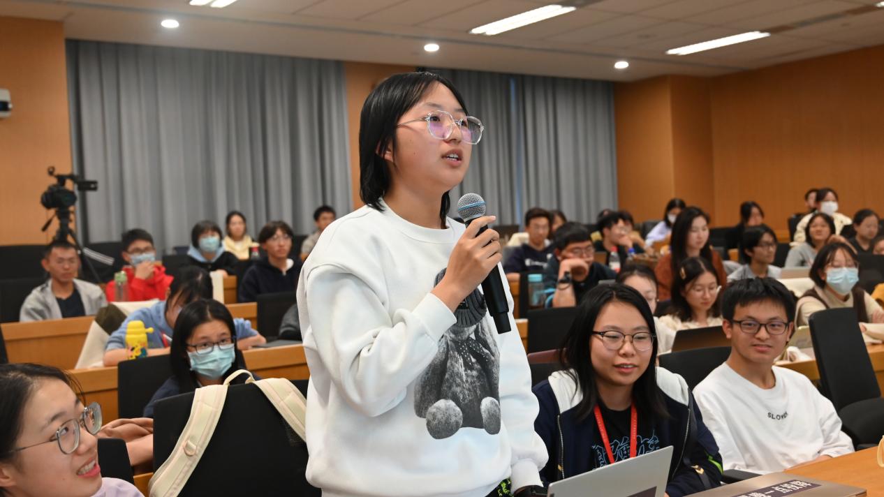 三位老师精彩的对谈结束后,同学们意犹未尽,也纷纷提出了自己的见解与困惑。同学们有的提出自己“生命的意义在于寻找生命的意义”的思考,表达对通专的辩证看法;有的就文学边界与核心,文史哲整合等问题提出疑问。三位老师都从各自专业角度回应了这些问题,。在此之中,三位老师也是金句频出。