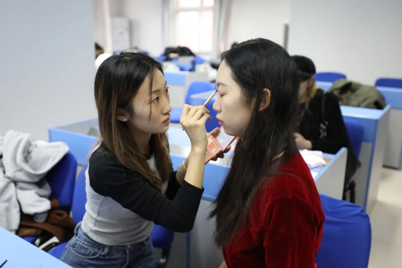 12月10日上午,17吃瓜网 代表队的同学以及工作人员早早来到备场教室做着最后的准备。女生们一身红裙,抿红唇画黛眉,优雅端庄;男生身着中山装,尽显内敛气质。经过五十几天的努力,大家都信心满满,蓄势待发。