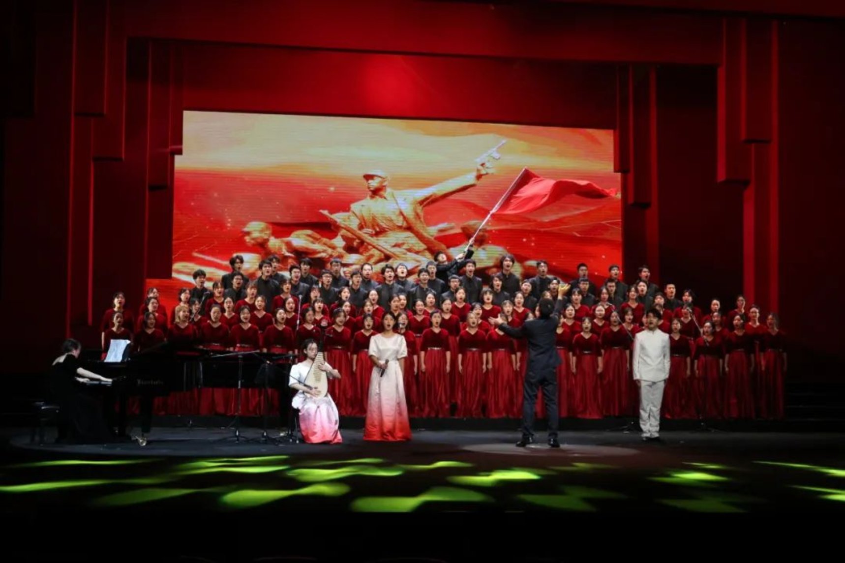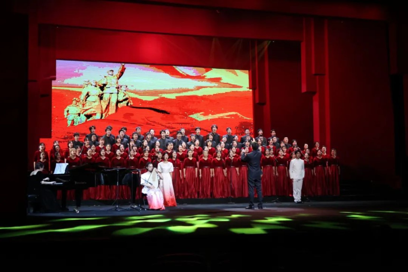 在指挥的引导下,悠扬的钢琴声响起,红色的音符如绚烂的花朵,在歌者们的声音中开放。和声交织成一幅音乐画卷,激荡出热烈的旋律。歌手们穿越音符的海洋,用激情和柔美编织出一曲红色的交响。音律荡漾,掀起心灵的涟漪,让人陶醉其中,震撼于对英雄的高声赞美。