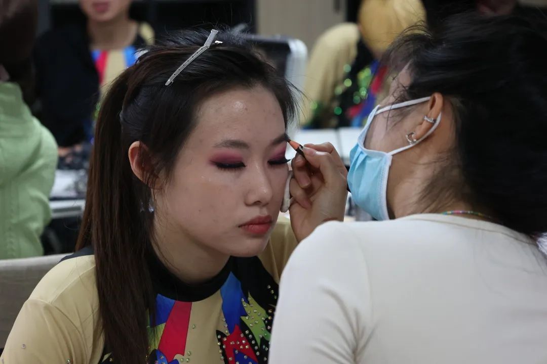 10:00,明德健美操队的同学再次登上明德堂彩排。前一天的初步熟悉与夜晚的最后练习为这次彩排带来了更上一层楼的舞台效果。在十分钟简单彩排后,队员前往休息室调整并开始化妆。