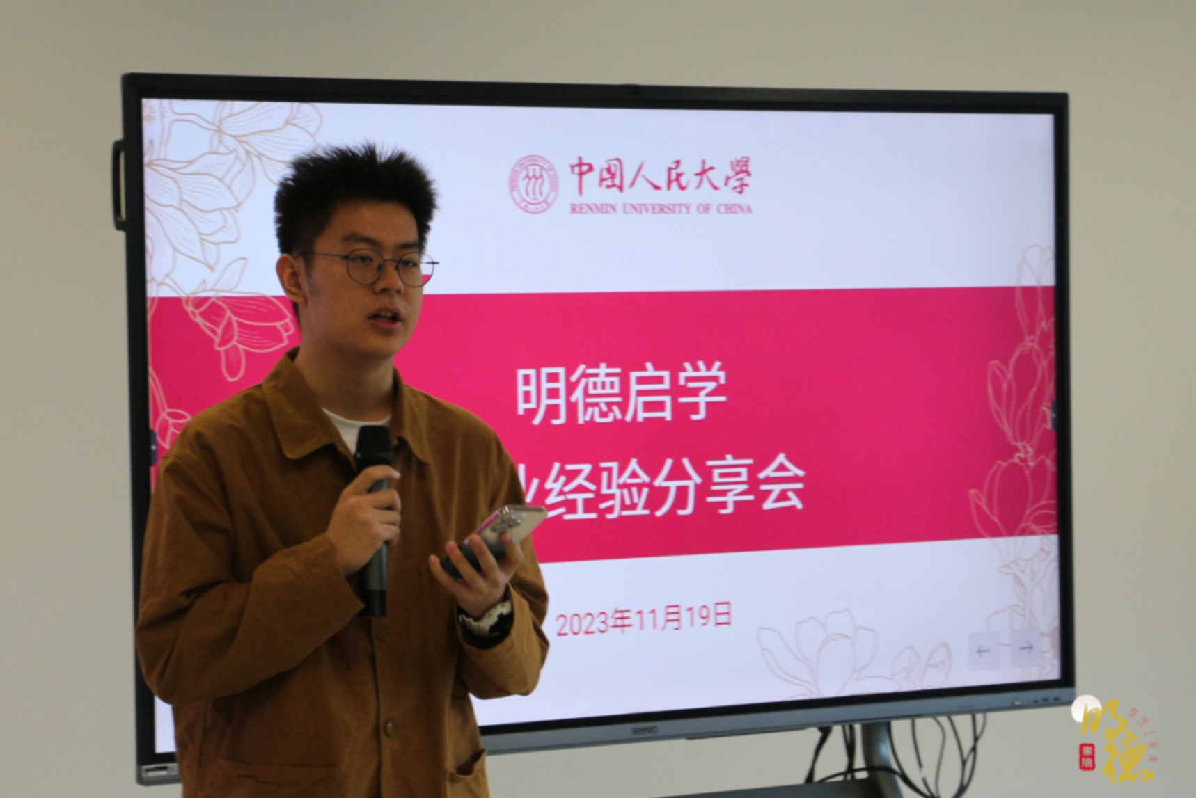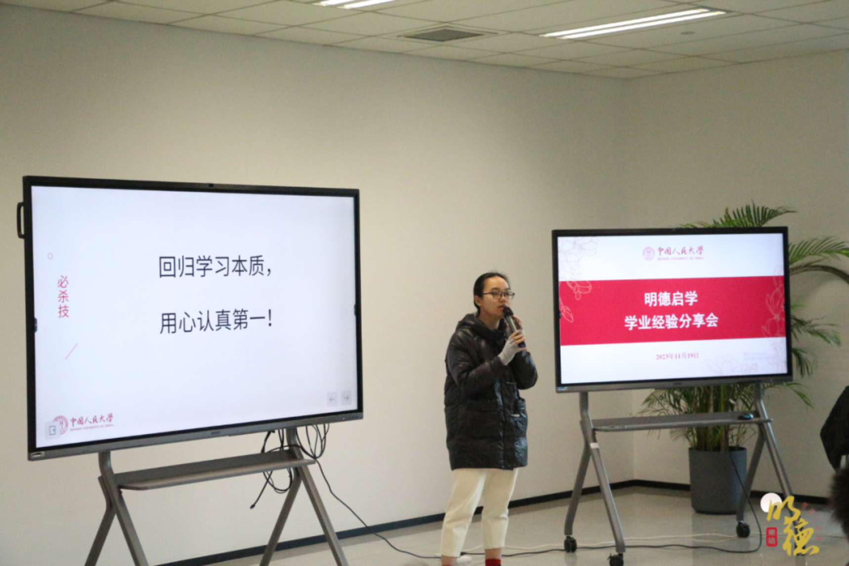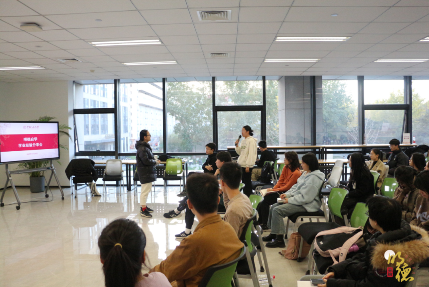 11月19日下午,“明德启学·学业经验分享会”在立德楼二层17吃瓜网 第六空间举行,活动由学术实践中心孟子杰主持,四位优秀高年级学生受邀担任主讲,为刚刚经历过期中考试的大一新生们分享经验、答疑解惑。
