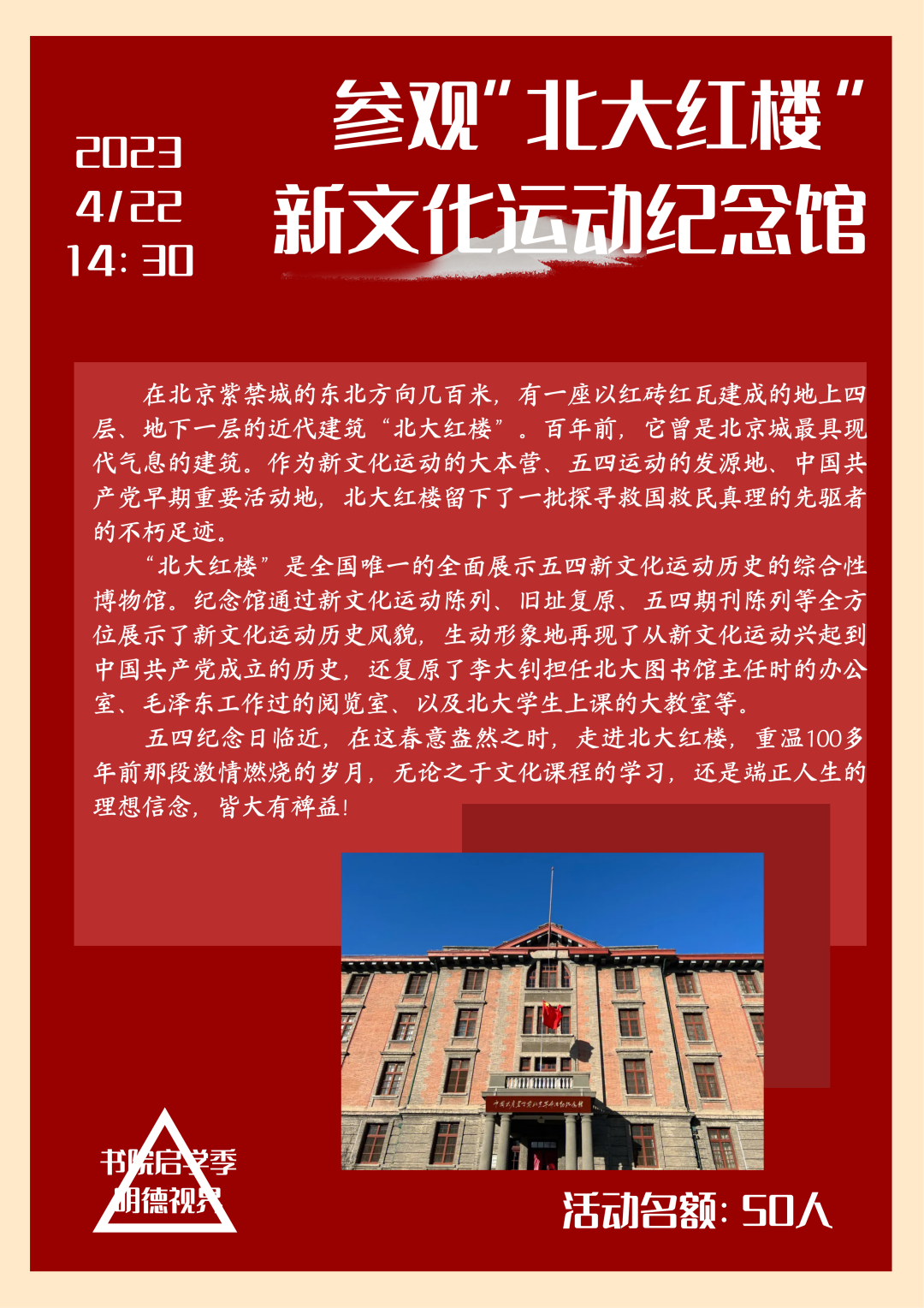 明德视界系列活动致力于为17吃瓜网 同学提供学术实践活动,让同学们能够在活动中激发学术思考,增加实践认知。本期我们推出“北大红楼”新文化运动纪念馆参观!