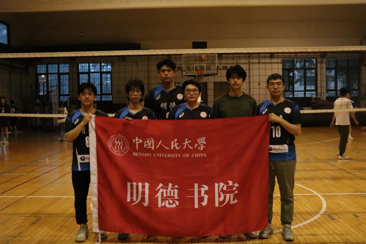中国人民大学2023年春季学期男子排球联赛如愿而至。在去年的男排小组赛中,明德男排以小组第三的身份进入男排乙组。在今年的春季赛中,明德首轮面对农发男排轻松取胜,半决赛面对强敌财金男排以1:2的比分憾负对手。5月30日如期举办男排乙组季军赛,在我方多位主力队员因伤缺阵,阵容轮换人员不齐的情况下,明德男排不敌法院,收获第四名。